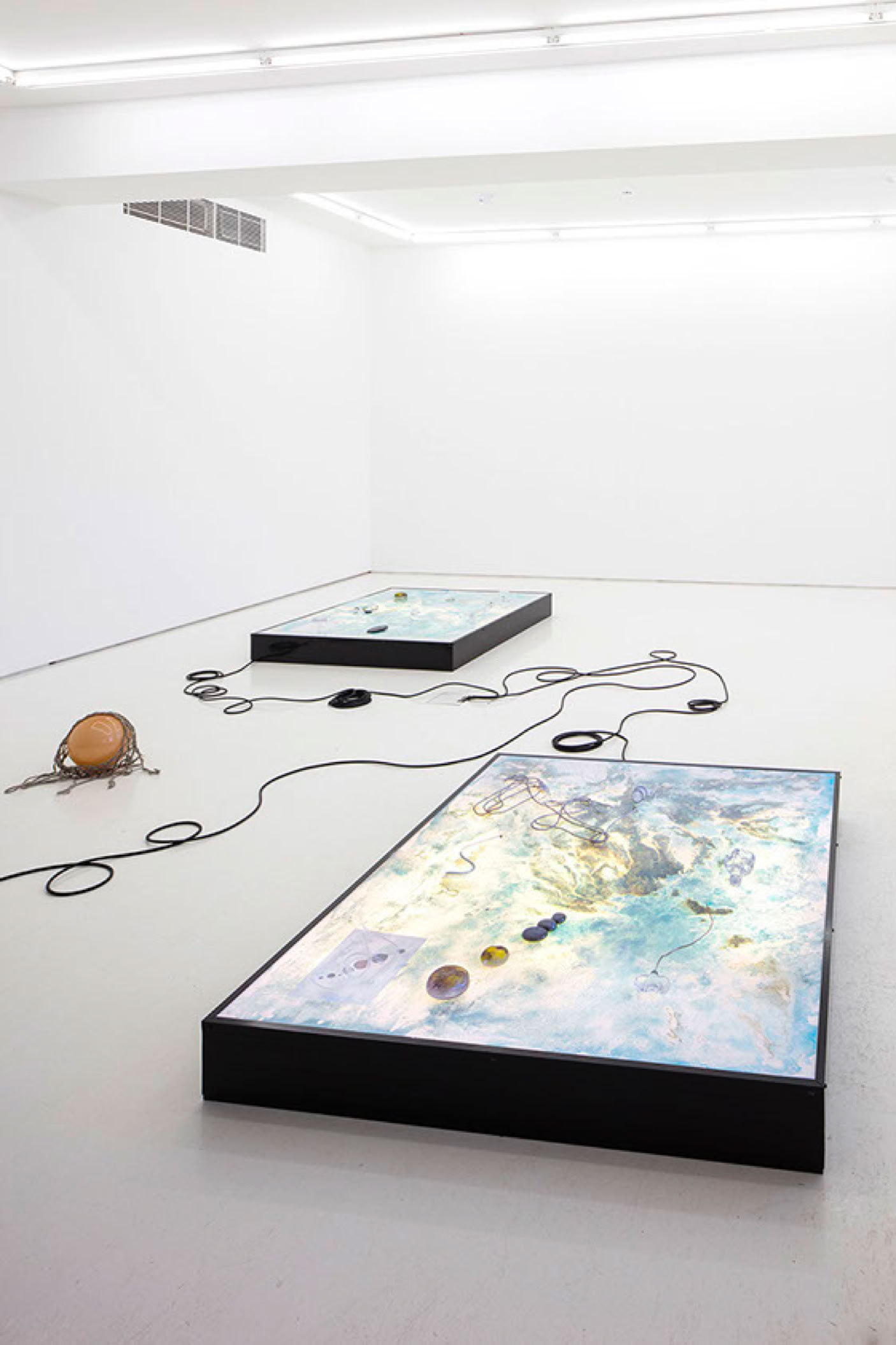 Dossier of Osmosis is a multifaceted installation initially commissioned for the 21st Biennale of Sydney (2018). The work seeks to decompose binary logic by adopting forms of thought and knowledge production that rely on complex systems of connections rather than oppositions. Assemblages of glass and other objects, biochemical processes and their traces form an open-ended installation that is continually changing and evolving at each iteration.