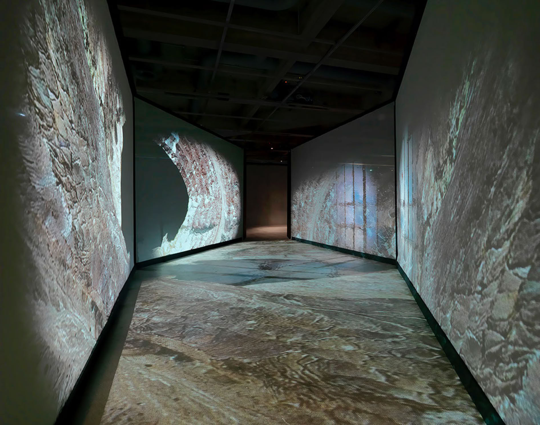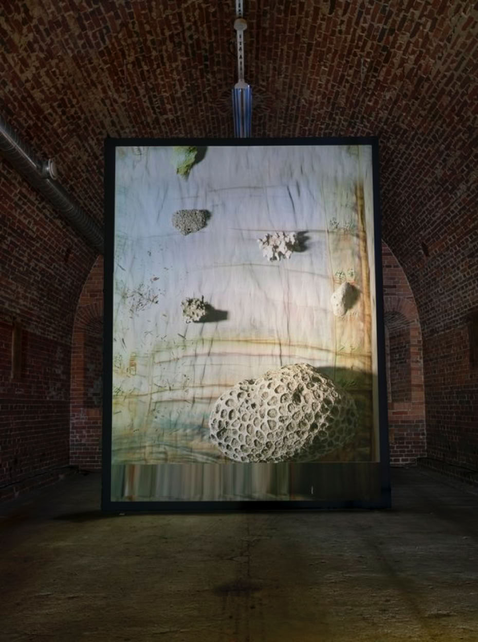 Azure Dune presents a blend of an imagined desert landscape and the textures of azurite, which is one of the ores from which copper can be extracted. It is a meditation on the transformation of the ecosystem affected by climate change, human activity and deep time processes.