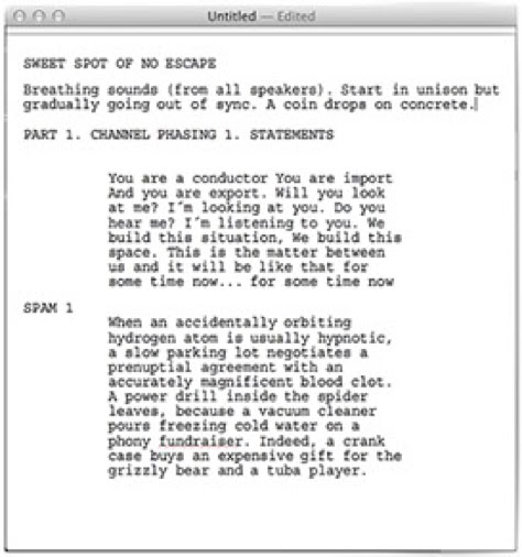 The aural events of the work are channelled with ultrasonic speakers and singers who are wirelessly connected to the library's primary public address system. A speculative score for the composition is displayed in the form of a video installation and series of silkscreened scrolls.
