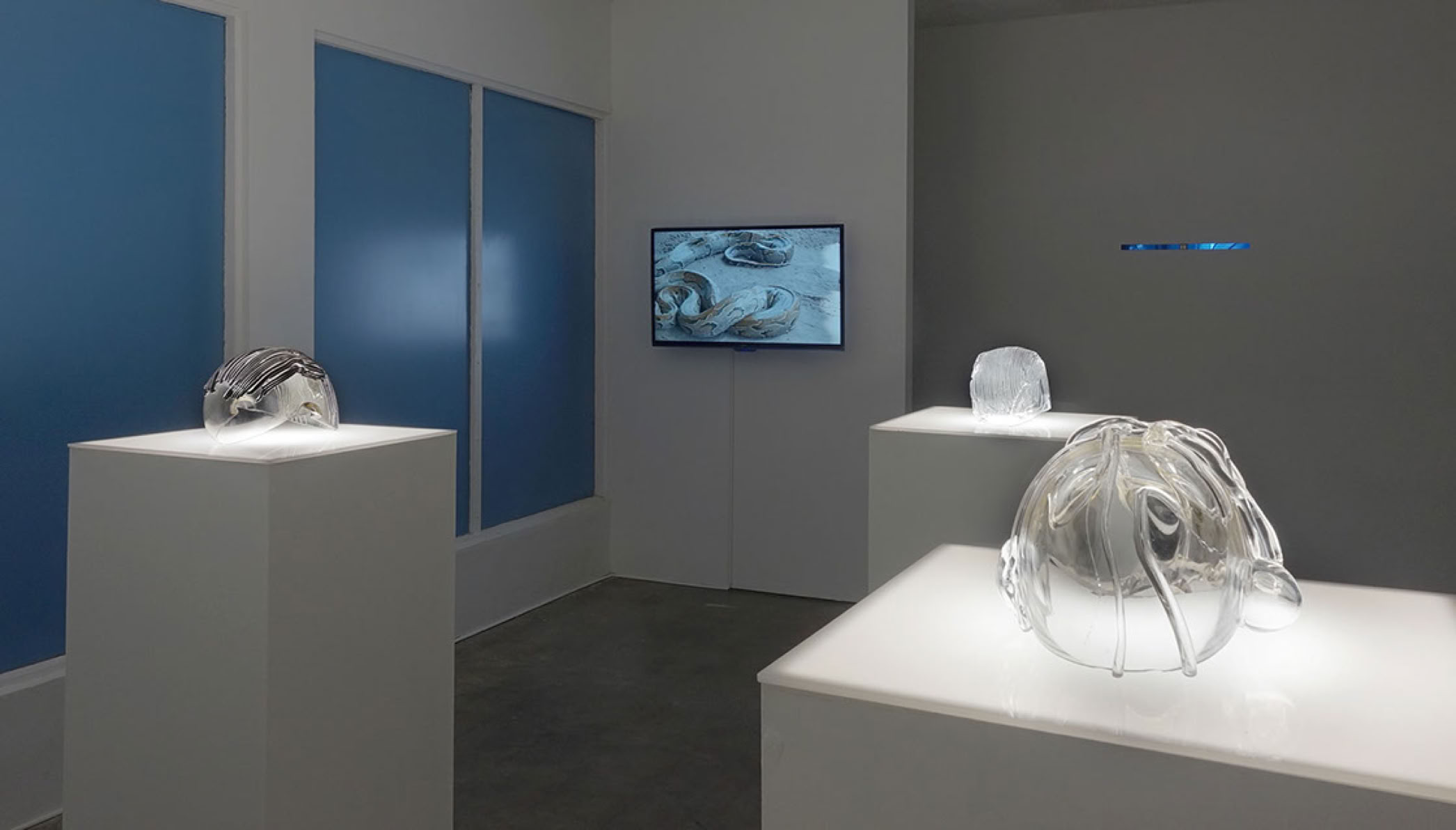 Video installation, glass objects
